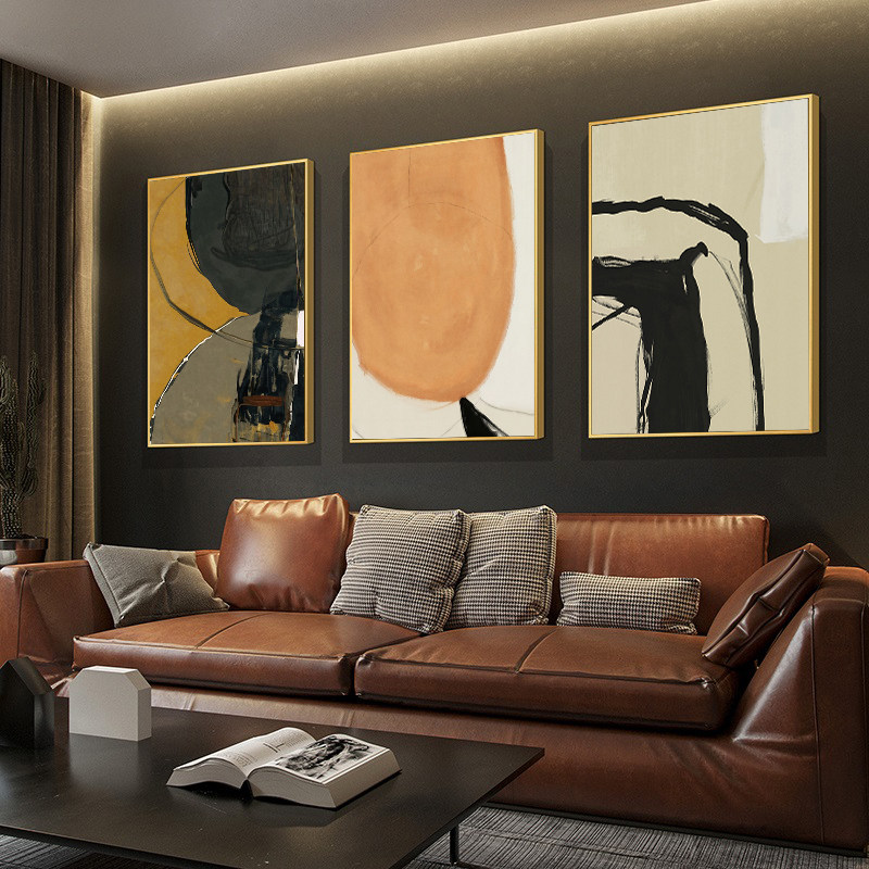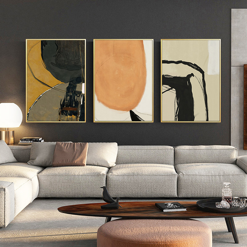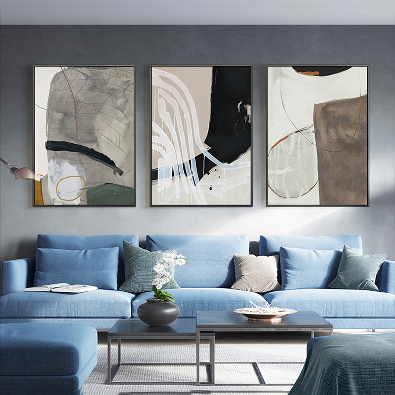 Hand-painted Oil Painting Abstract Black & White Light Extravagant Triplex Living Room Sofa Background Wall Decoration Painting Modern Dining Room Genguan Hanging Painting