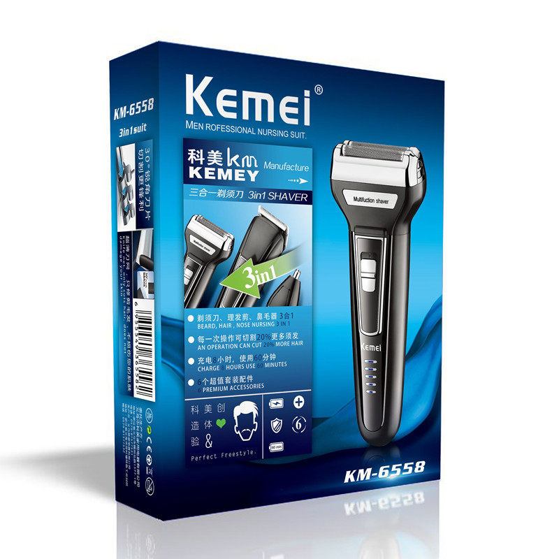 Kemei KM-6558 Reciprocating Double Head Three-in-One Electric Shaver Knife Trim Nasal Hair Cutter Set