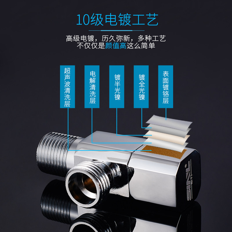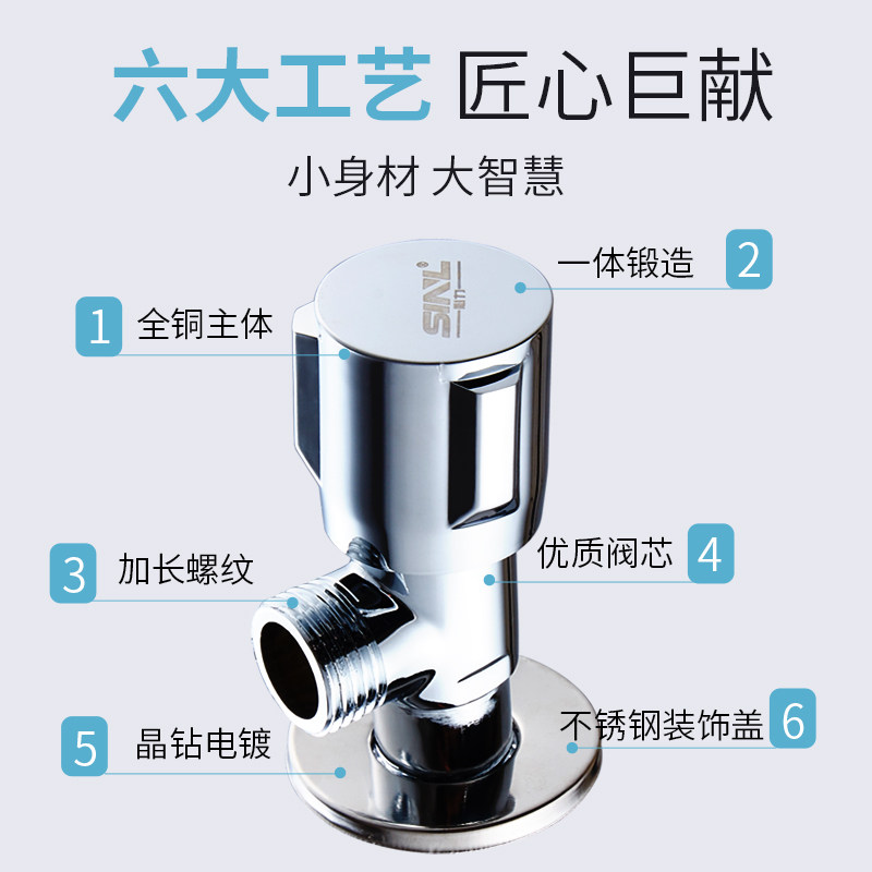 All copper hot and cold triangular valve thickened explosion-proof household water stop valve one in two out three heads through faucet water stop valve