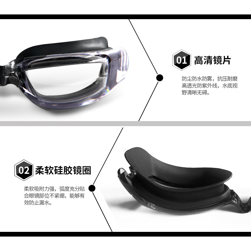 U.S. VR myopia waterproof anti-fog transparent belt degree swimming glasses swimming goggles female left and right different men with earplugs