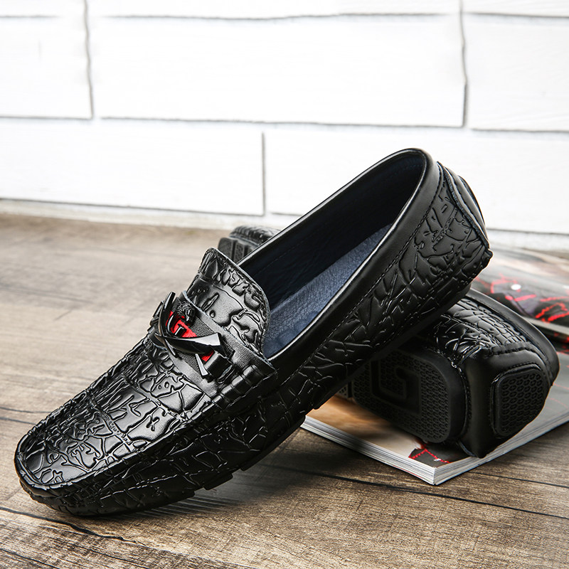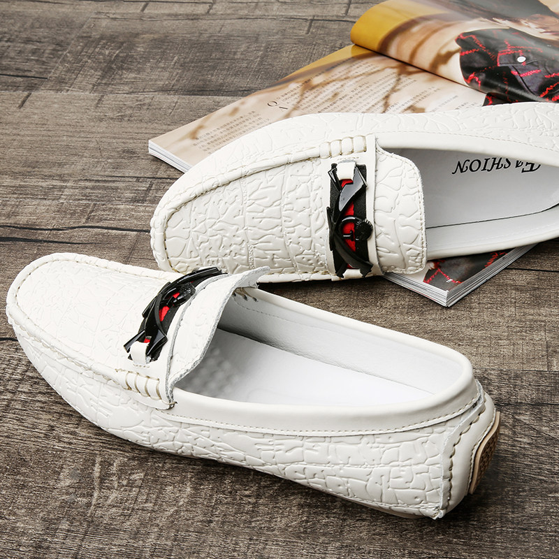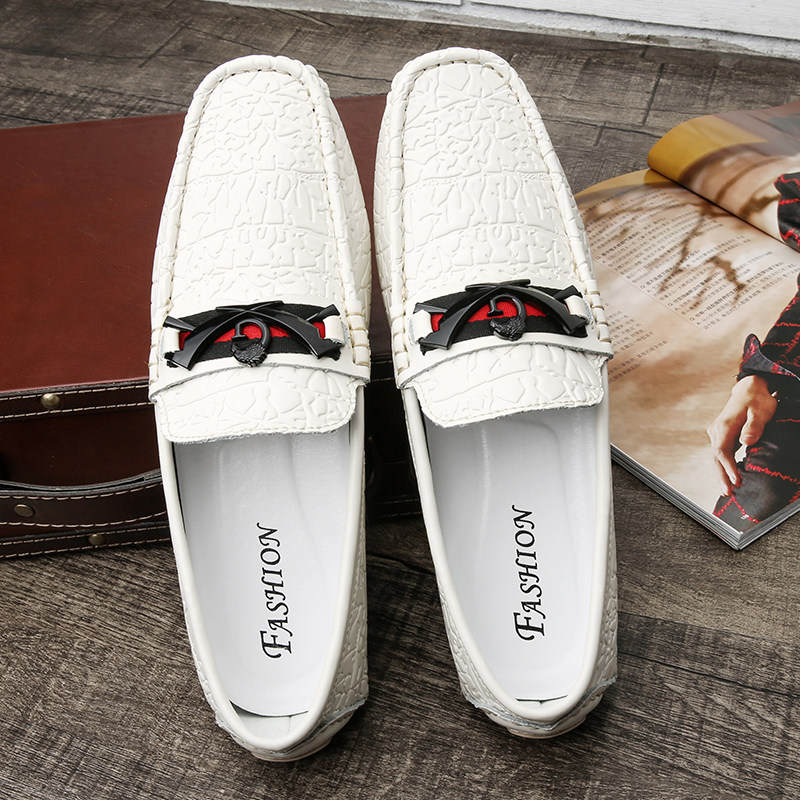 Doudou shoes men's crocodile pattern autumn new Korean version trendy leather shoes trendy beige casual slip-on loafers