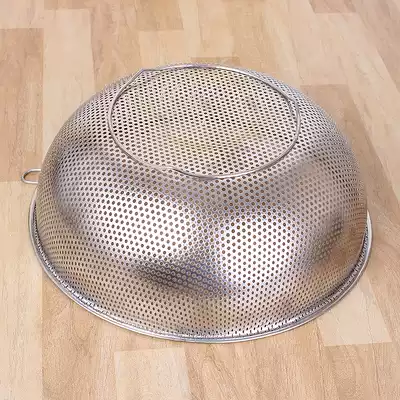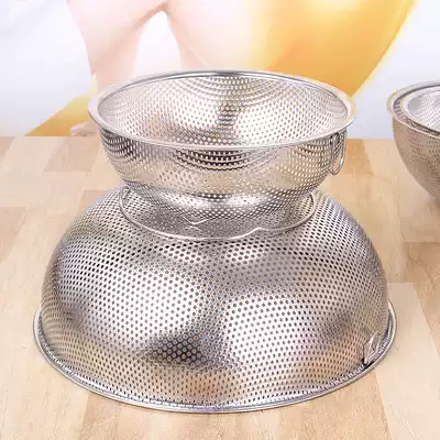Thickened stainless steel drain basin Round vegetable wash basin Household large amoy rice sieve drain basin Fruit drain basket small hole