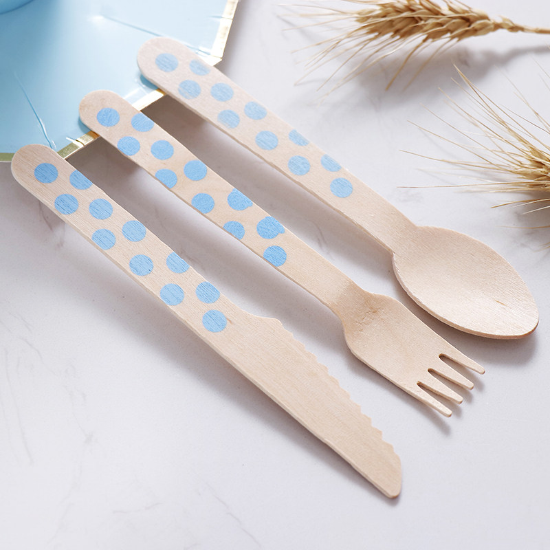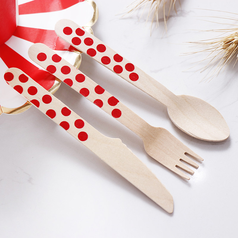 Runlux 10 - packed one - time environmentally friendly tableware wooden fork and spoon birthday party cake fruit log knife and fork spoon