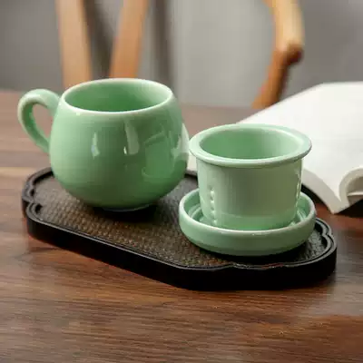 Celadon mug Ceramic filter cup with lid Household large capacity teacup Office tea cup Water cup Tea set