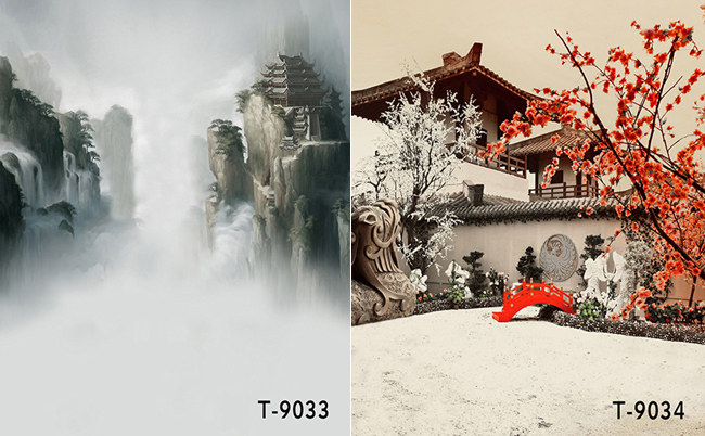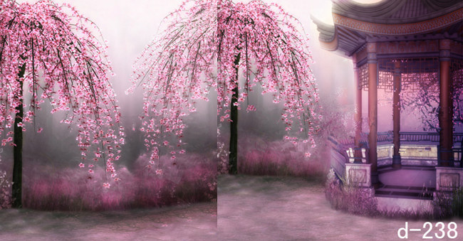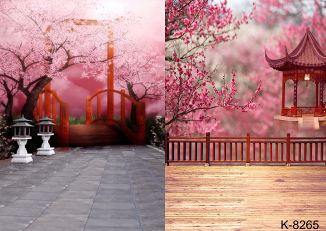 Small cloth BJD model Figure doll shooting photo OB11 photo background cloth ancient wind red building dream cherry blossom tree