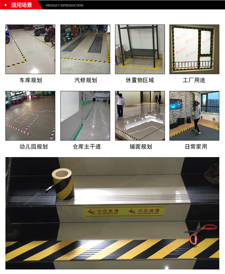 Warning tape 5S logo color scribing floor tape PVC black macular horse line warning landmark adhesive floor glue