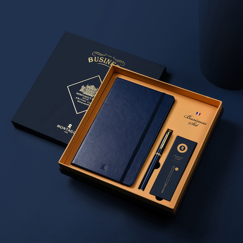 (Light Lavish Companion Courtesy) French Dream Delicate Sign Pen Notebook Gift Box Customisable Imprint Logos Metal Pen Male Lady Upscale Business Leather Notepad Gift Set Group Middle Sex Pen