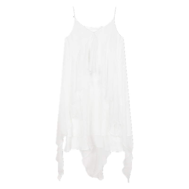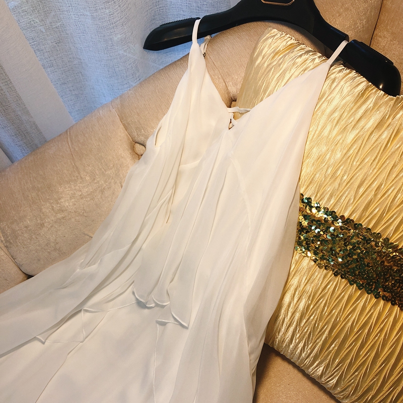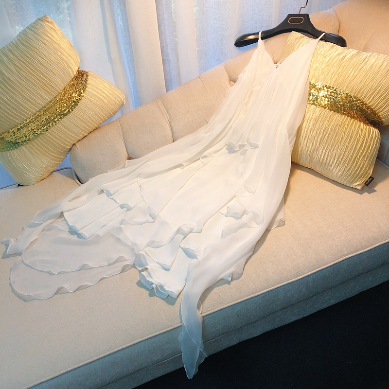 French niche very fairy white sling V-neck loose belly cover seaside vacation irregular a-line dress summer
