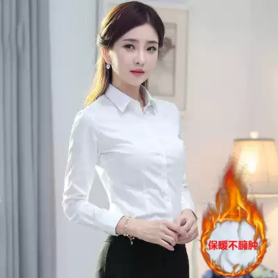 White shirt women long sleeve plus velvet office clothes autumn and winter new work clothes cotton thickened hot clothes dress anti-wrinkle