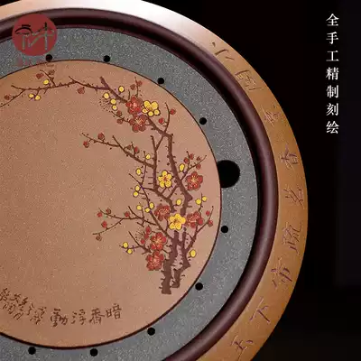 Hongzhong Yixing boutique purple sand tea tray round household dry bubble table famous all hand engraved tea tray large