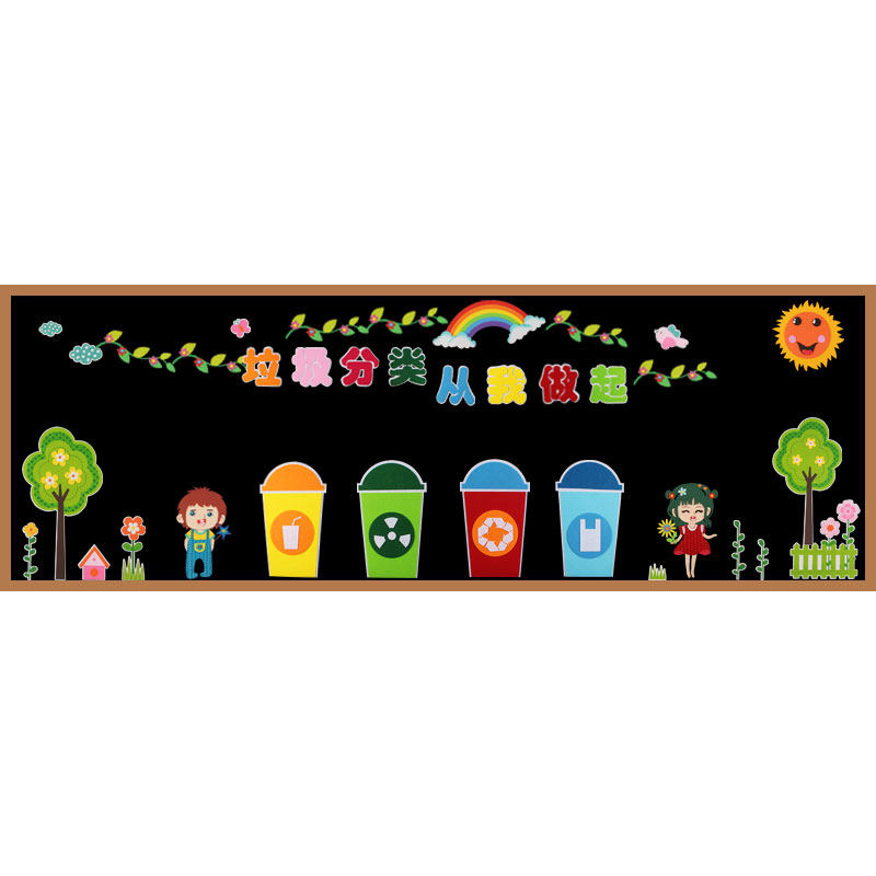 Garbage Sorting Environmental Protection Themed Primary School Kindergarten Classroom Black Board Newspaper Care For Environmental Protection Earth Cultural Wall Sticker