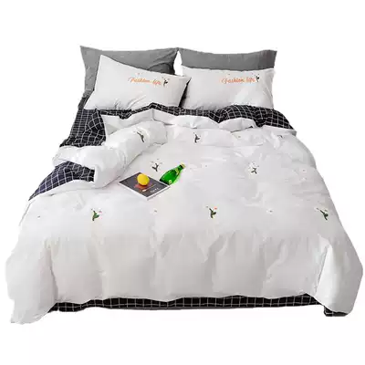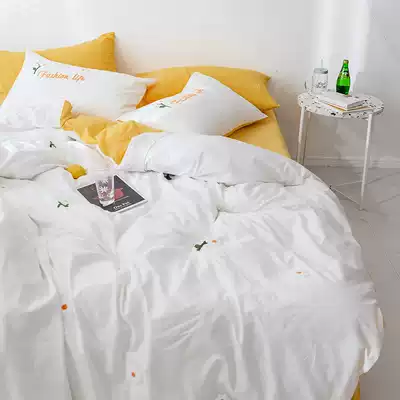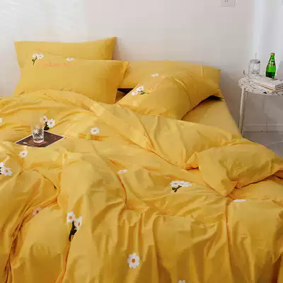 Net red pure cotton four-piece embroidered small daisy quilt cover 1 8m double bed single bed female dormitory three-piece set