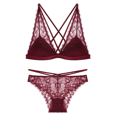 French Triangle Cup No Steel Ring Underwear Suit Sexy Lace Slim Cotton Cross Beauty Back Summer Bra Small Breast