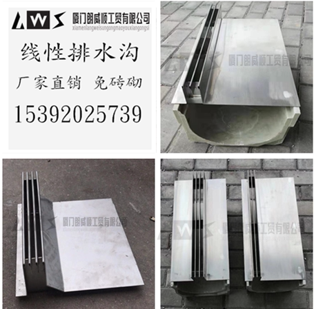 Finished linear drainage ditch resin concrete drainage tank plastic U-slot grid stainless steel cover plate