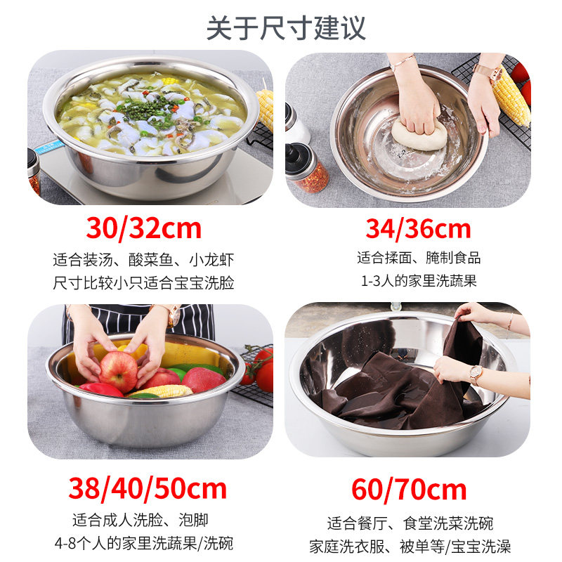 Food grade 304 stainless steel basin Home large number washing basin kitchen thickened basin Extra-large Washbasin Wash Basin