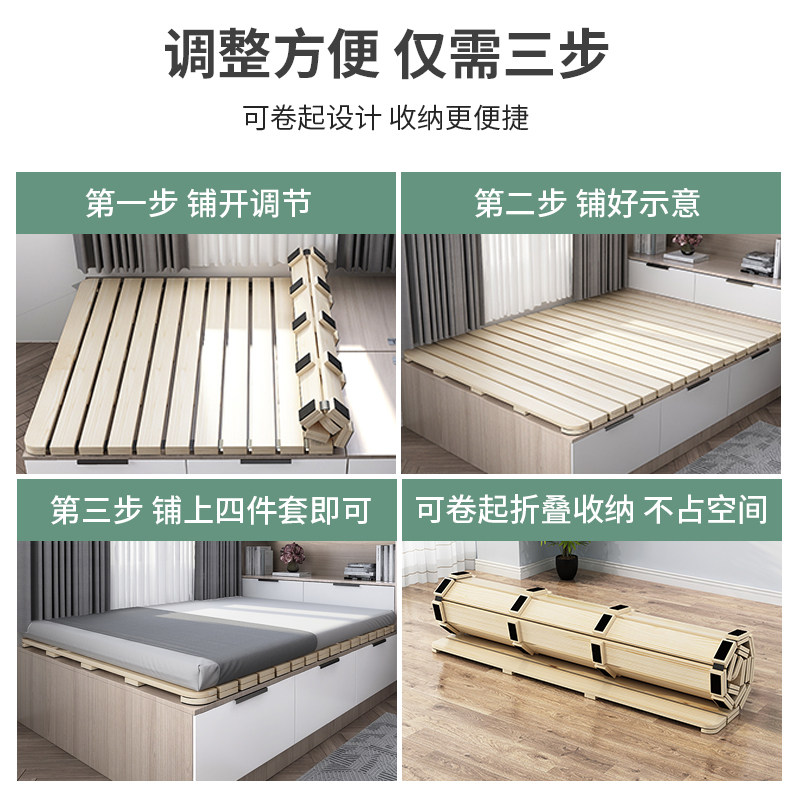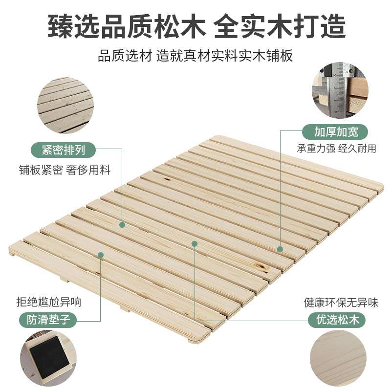 Moisture-proof rib cage pine wood 1.51.8 m roll folding breathable paving tatami solid wood bed board mattress frame