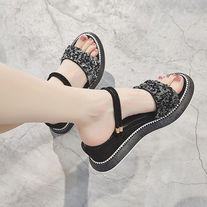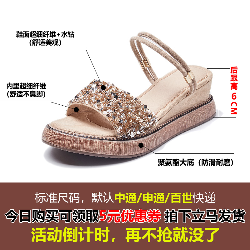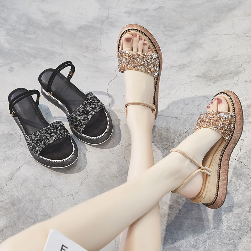Sandshoes 2022 New Women's Summer Water Drilling Ins Tide Net Red 100 hitch heel-lined with semi-trailed pastry flat bottom
