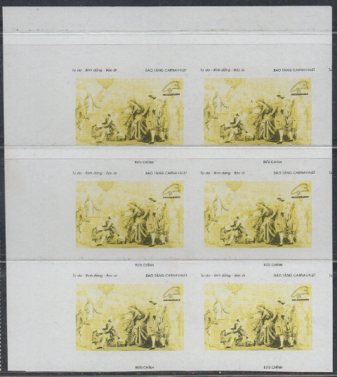 Vietnam stamps 1989 French painting "Free and Equal Fraternity" bifacial printed (over-edition paper?)