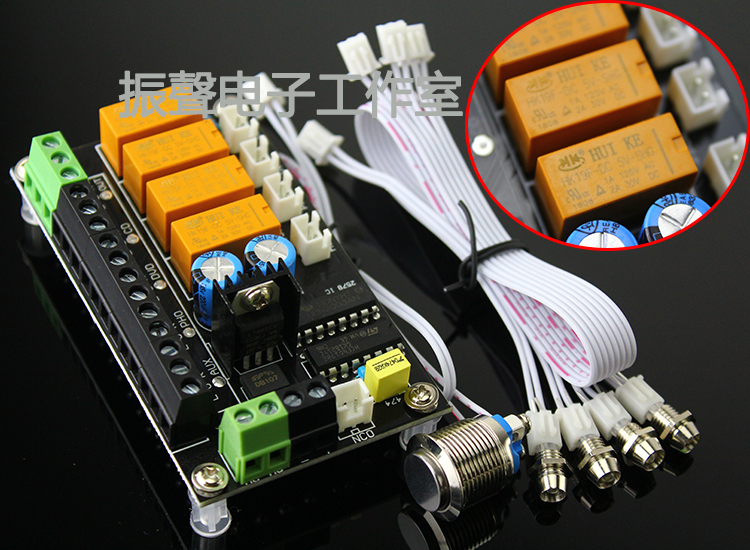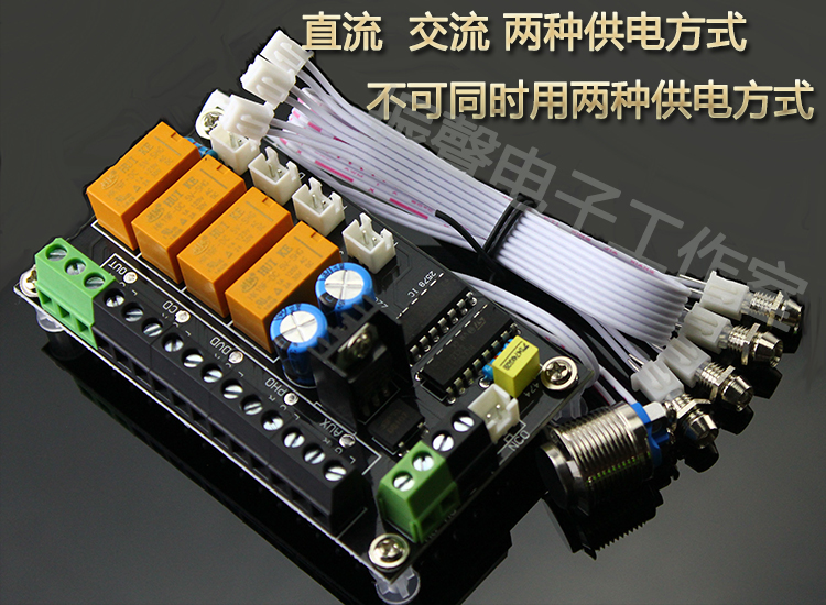 Touch the button 4 to choose 1 DC and AC two input methods Huike relay wiring audio switching board