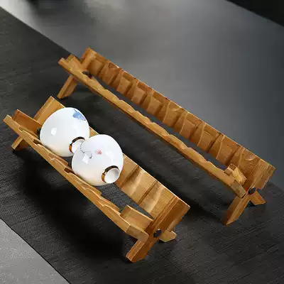 Minchuang ebony solid wood cup holder household tea tray tea ceremony drain rack folding simple Japanese kung fu tea set cup holder