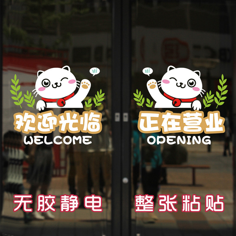 Creative personality shop glass door stickers Clothing Milk Tea Welcome to cute little Cat Ramen Decoration Sticker