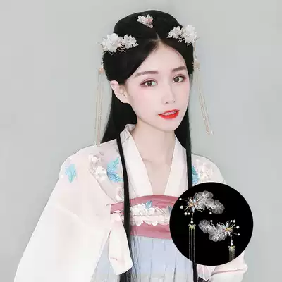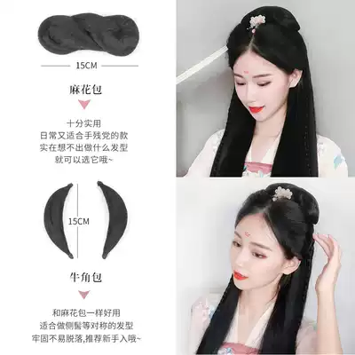 Ancient costume Hanfu modeling wig bag flower thousand bones twist pigtail pad hair Ancient style children's plate hair horn bun set