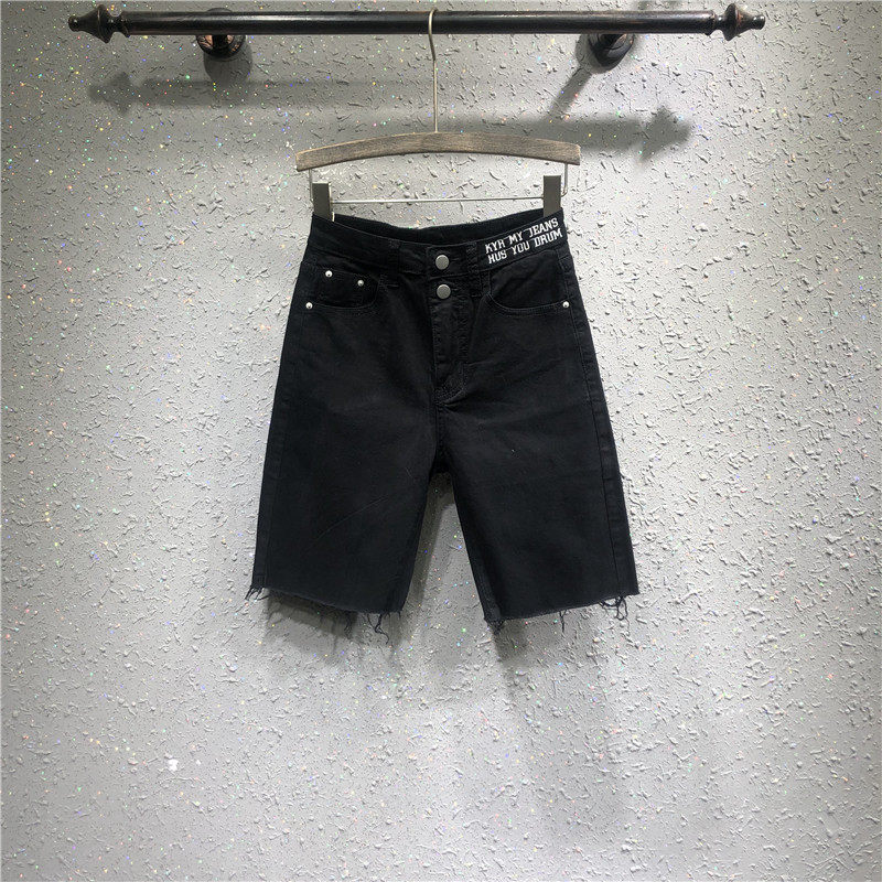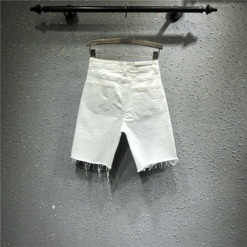 Denim Shorts Woman High Waist Thin sports casual white straight cylinder 50% Pants Woman slim fit 50% pants 5 Pants 5 Pants