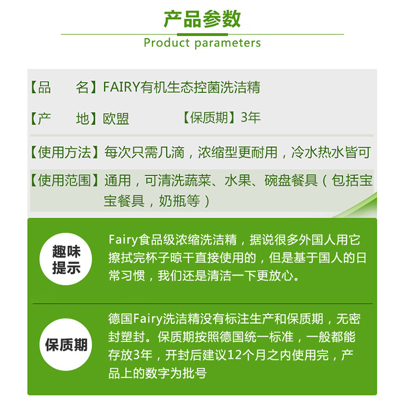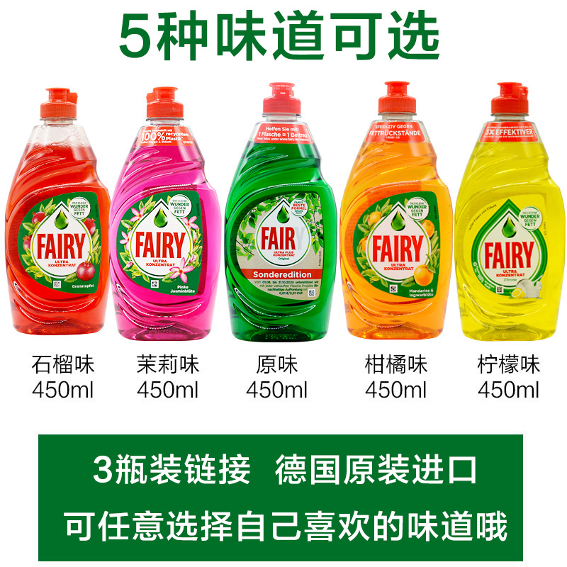 German original dress Fairy concentrated wash detergent dishwashing liquid edible fruit and vegetable milk bottle baby cutlery 450ml * 3 bottles