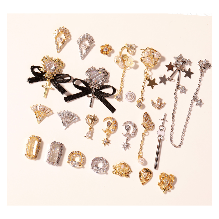 Nail jewelry Baroque diamond jewelry new love net red lace bow chain small pendant Zircon 387