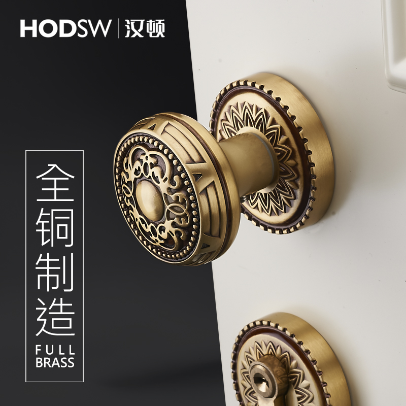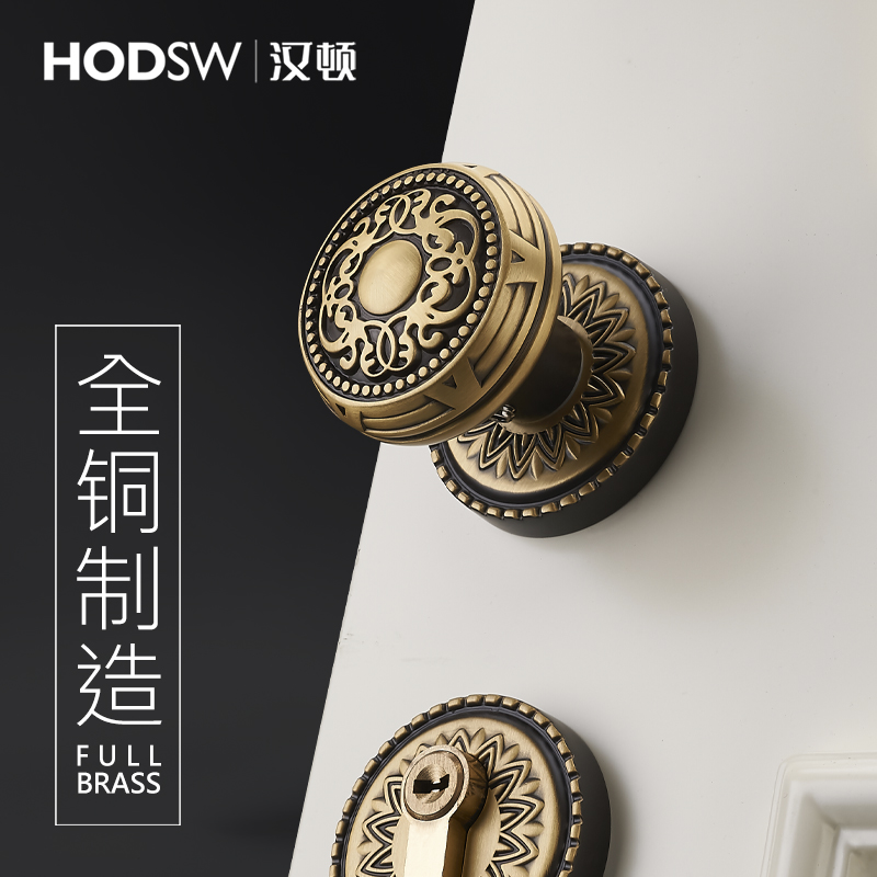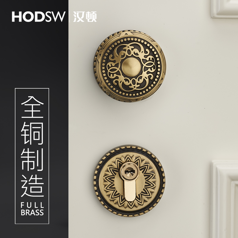 Hanton full copper indoor bedroom door lock pure copper European-style mute two-piece sphere lock solid wood door handle home lock