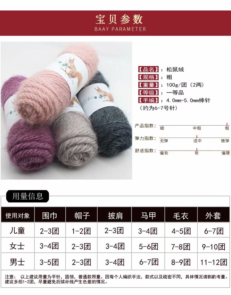 Squirrel fluff thread Bright silk gold velvet thread Medium thick squirrel yarn Hand-woven hat scarf Baby wool supply