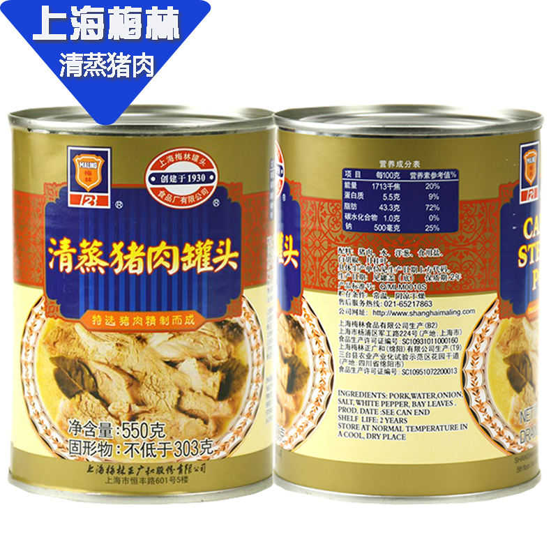 Shanghai Merlin Qing Steamed Pork Canned heated ready-to-eat instant food Lower meals mix 550g x 4 cans of clear steamed pork