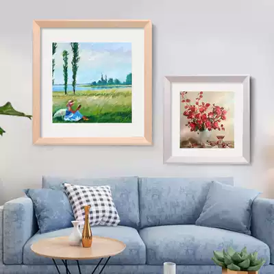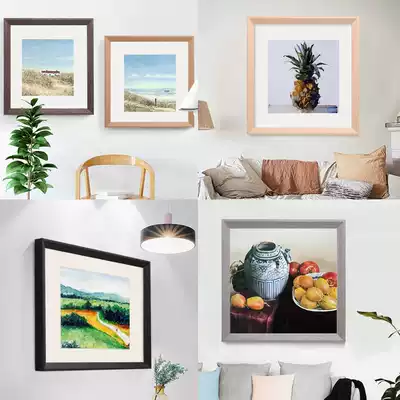 Square solid wood photo frame Wall hanging 33 38 50 Calligraphy Rice paper Cross stitch Chinese painting Mounting frame frame customization