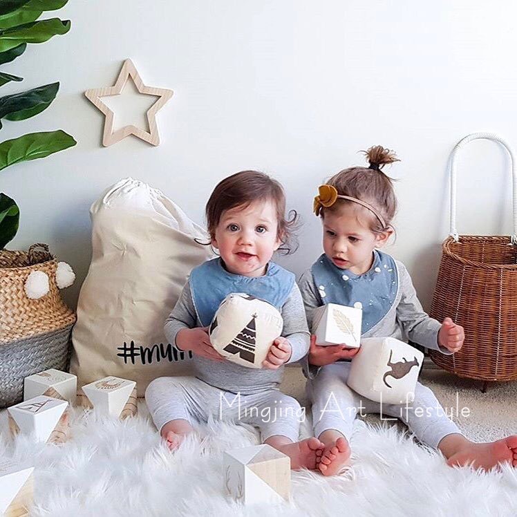ins Nordic Wooden Moon Stars Aircraft Butterfly Wall Stickway solid wood Songwood Children's room wall sticker