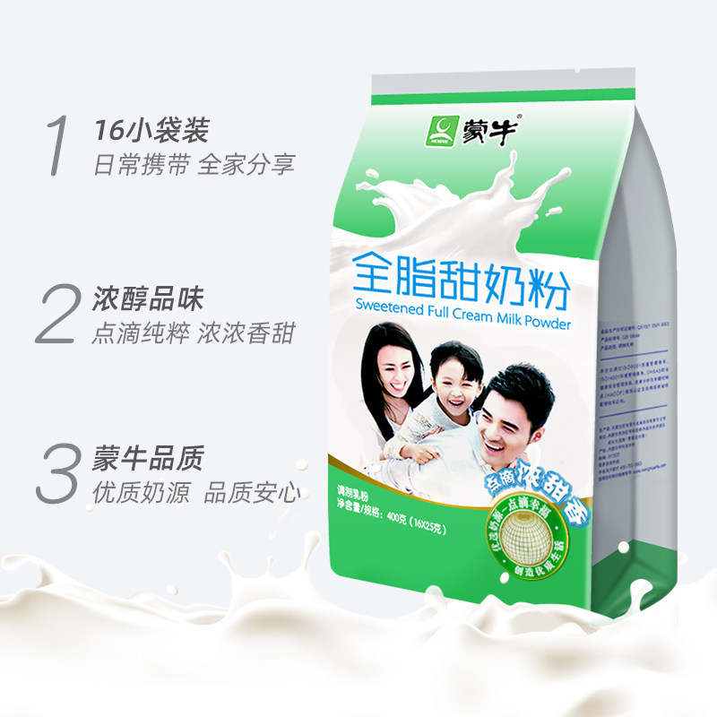 Monbull Full-fat Sweet Milk Powder Students Adult Teens Whole Family Nutrition Breakfast Milk Powder Flush Drinks 400g * 6 bagged