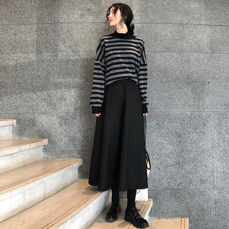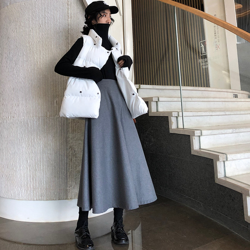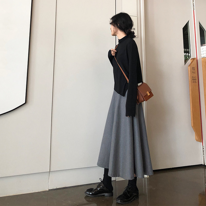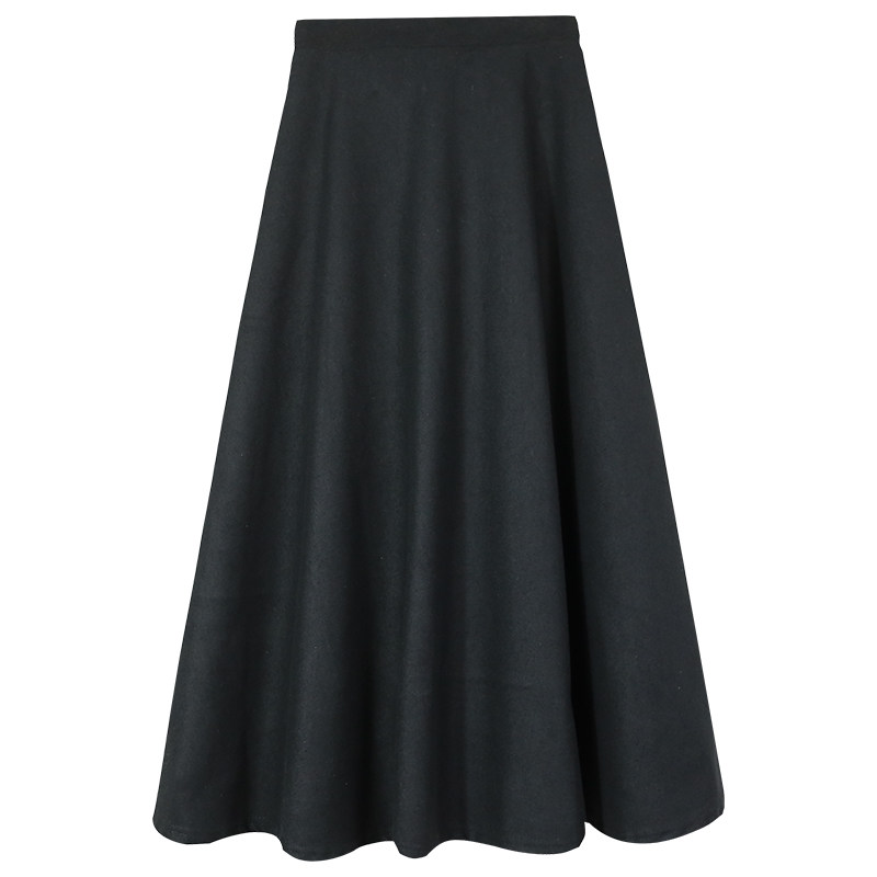 Black high-waisted thin woolen half-length skirt women's A-line large swing woolen mid-length skirt winter 2020 new