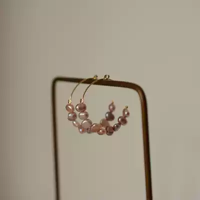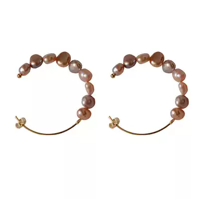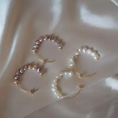 Original exclusive hand made strong light natural Baroque pearl earrings American 14K gold Gold C- shaped earrings female