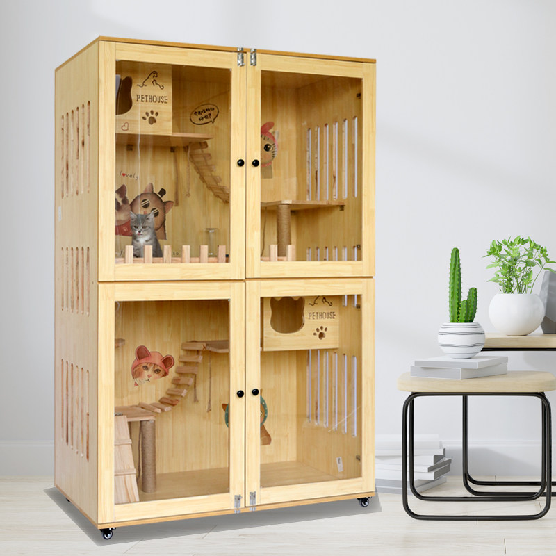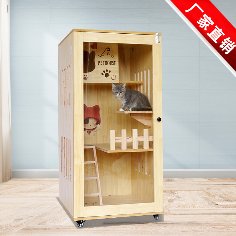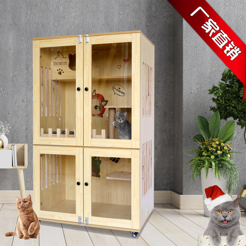 Cat Cage Cat Villa Household Solid Wood Double Storey Three-Storey Cat House Cat Cabinet Large and Small Indoor Cat Nest Cat House with Toilet