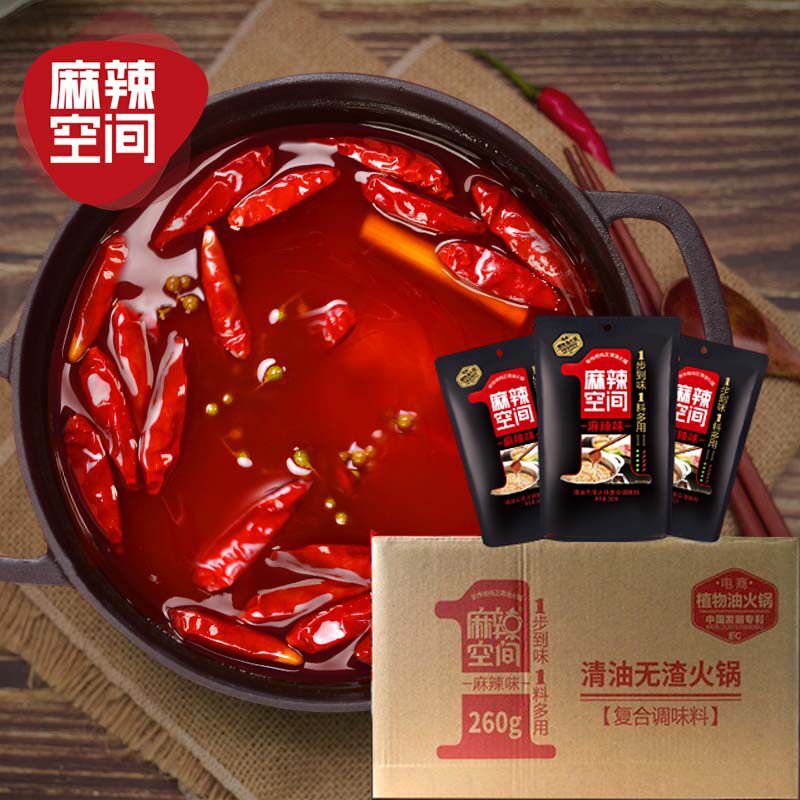 Spicy Space Sichuan Clear Oil Hot Pot Soup Base Batch of Spicy Hot strings Spiced Seasonings Seasonings 260g * 30 Bag