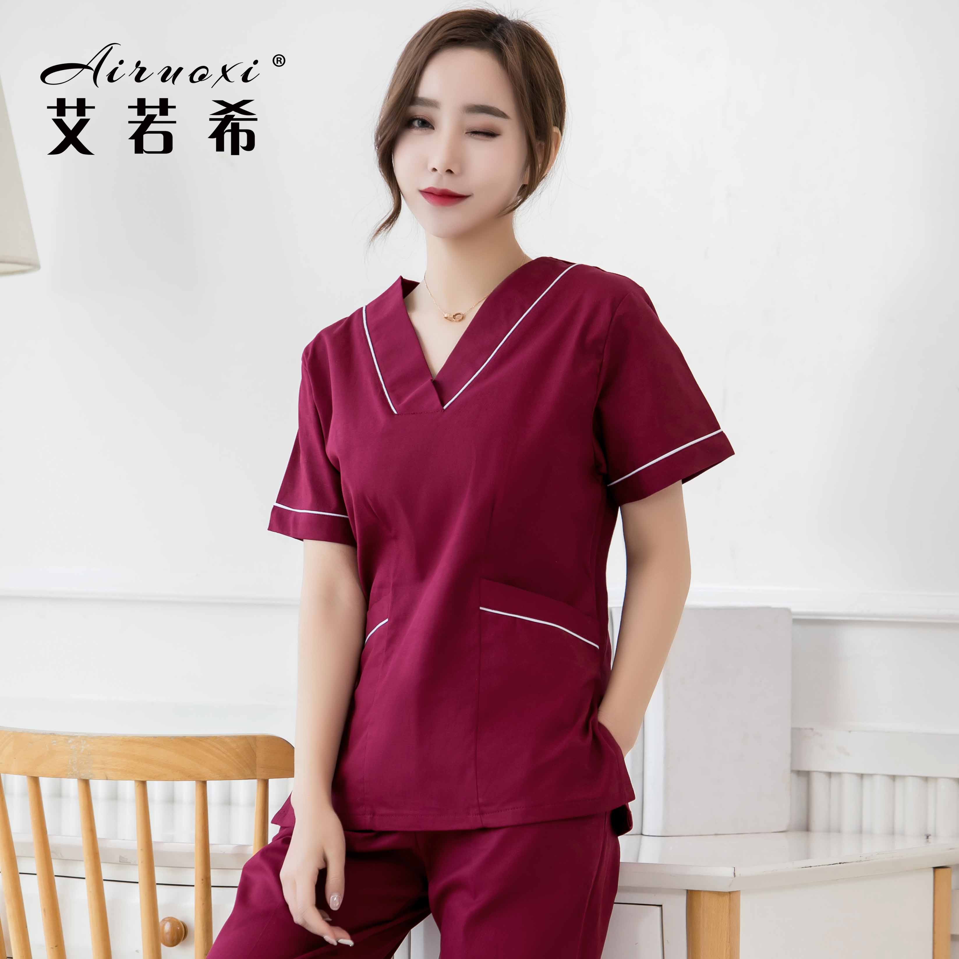 Upscale Handwashing Pure Cotton Operating Room Doctor Conserved Female Short Sleeve Elastic Brushed clothing Isolation workwear Men's Korean version