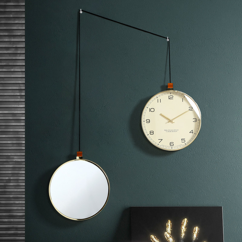 Nordic Creative Mirror Hanging Clock Living Room Home Modern Minimalist Clock Silent Atmospheric Personality Light Lavish Hanging Wall Watches & Clocks