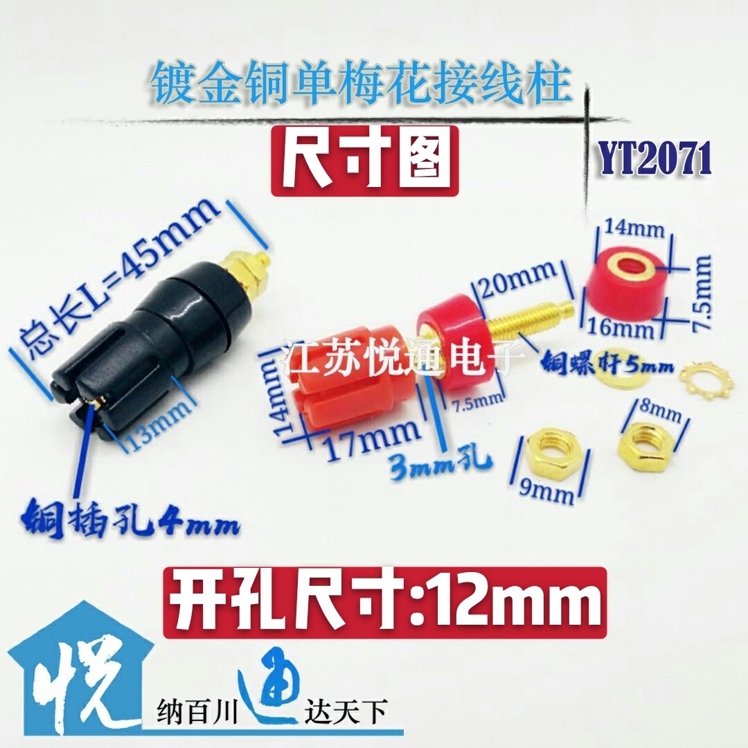 Plum blossom terminal post copper rod gilded amplifier sound box speaker red and black terminal 4mm banana plug socket