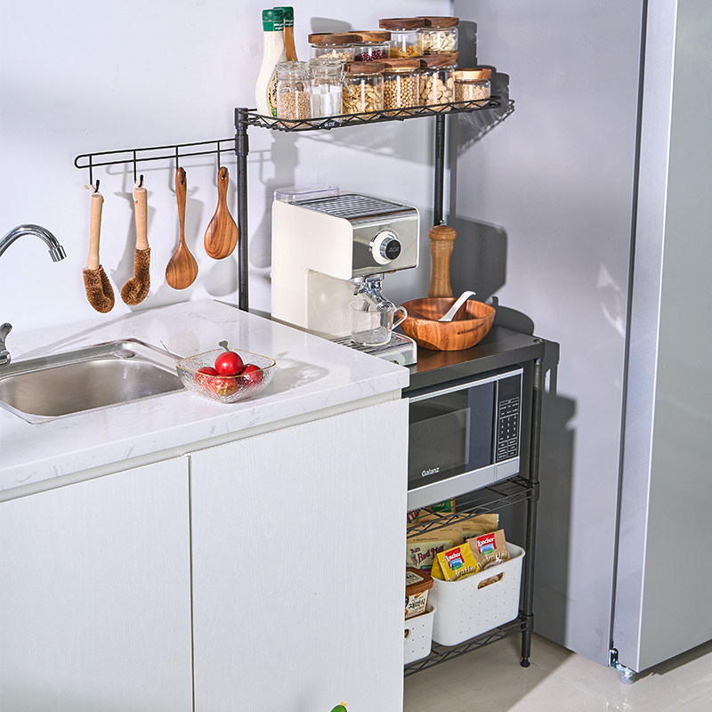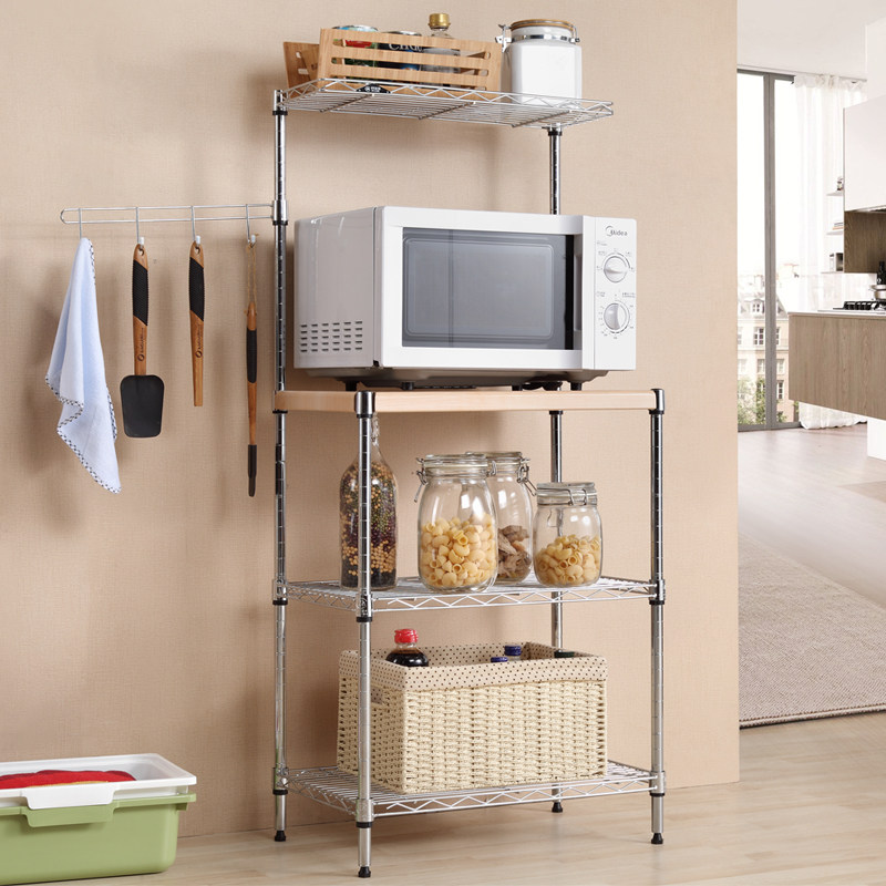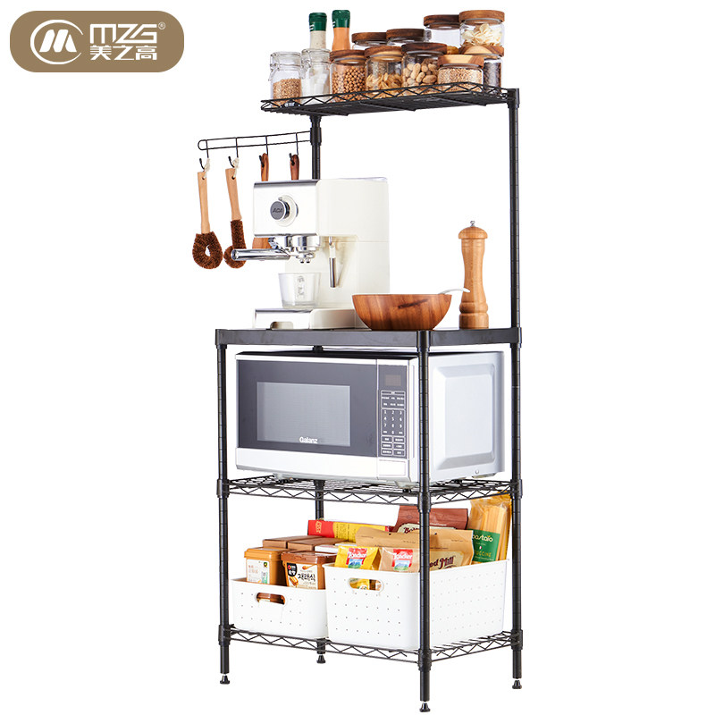 Meizhi Gao Shelf Popping Ash Kitchen Microwave Storage Floor Rack Floor Oven Rack Adjustable High Carbon Steel Four Layers