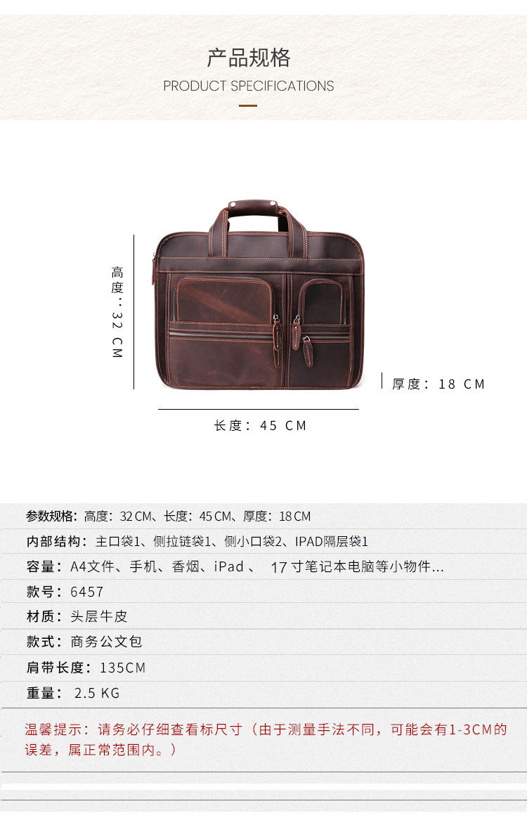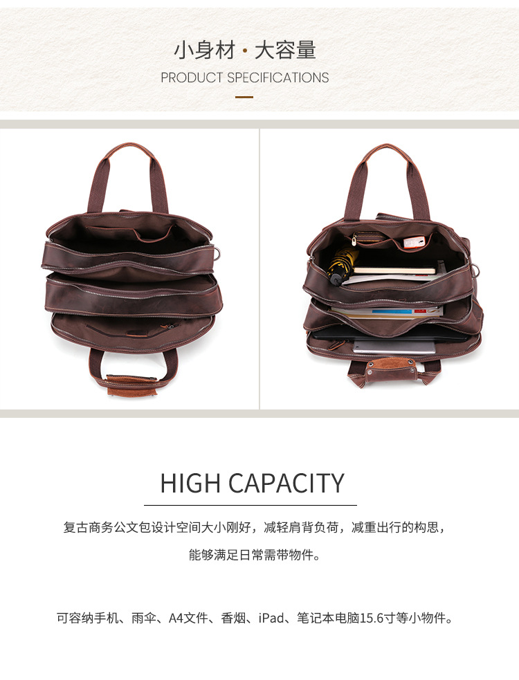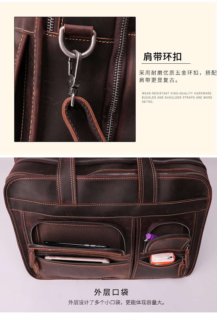 Original briefcase Men's business bag Mad Mapi leather Male handbag genuine leather handbag Baotou Layer Cow Leather 17 Inch Computer Bag
