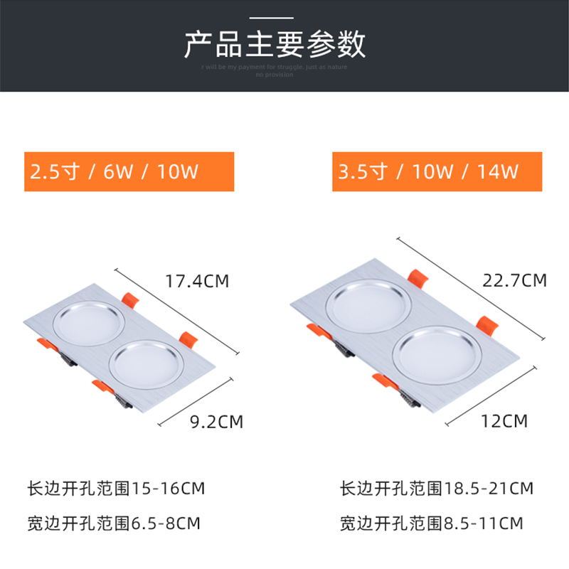LED Double head downlight Hanging ceiling grille light Rectangular spot light Recessed ceiling light Double downlight Double row bucket light