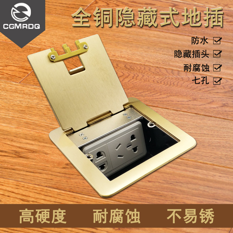 All-copper floor socket ground plug waterproof multi-function side plug open ground plug seven-hole socket ground hidden plug