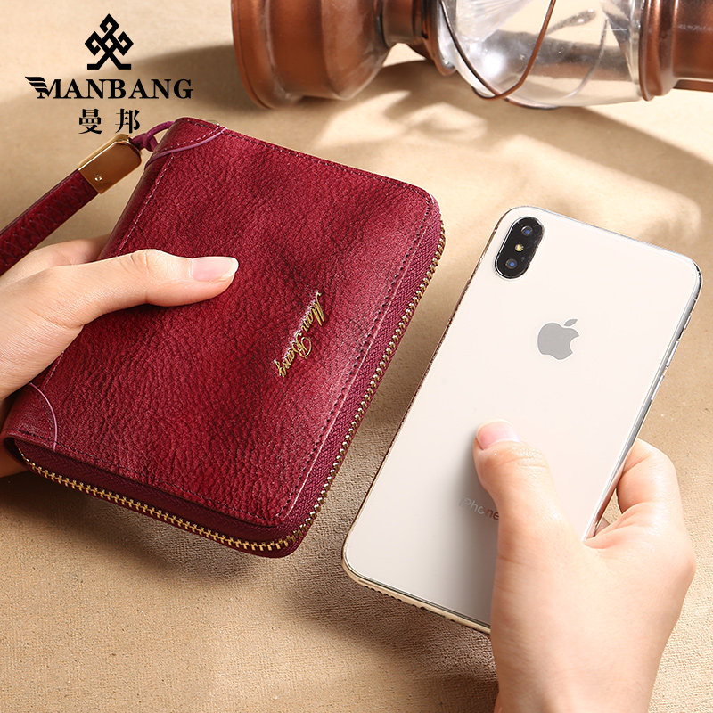 Manbang female card bag large capacity multi-card leather head layer leather card cover anti-theft brush anti-magnetic bank card storage clip