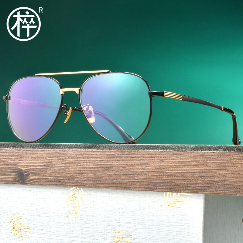 Wood Pawn Retro Ultra Light Pure Titanium Full Frame Glasses Male Tide Pilot Glasses Near-lens Women can be matched with anti-blue light