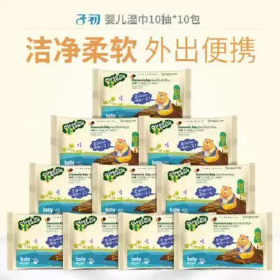Zichu baby wipes small packet wet wipes Special portable packaging for newborn hands and mouths Portable packaging 10 packs*10 packs
