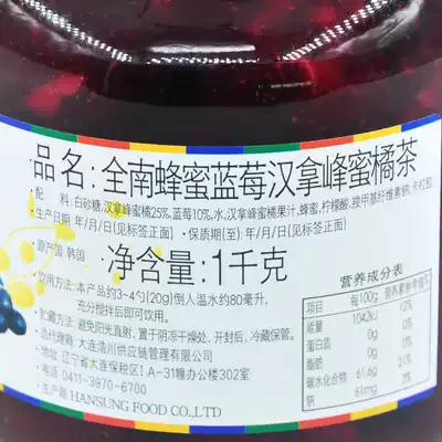 Quannan Honey Blueberry Hanna Feng honey orange tea 1000g Korean original imported fruit tea jam brewing drink 1kg